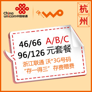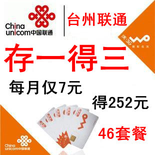充值优惠 46套餐3G号码 送话费 存一得三 存84得252 sls台州联通